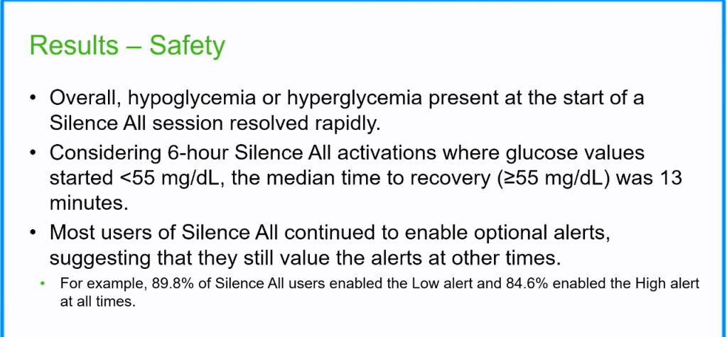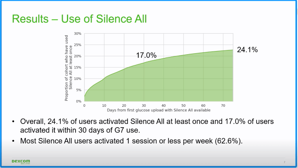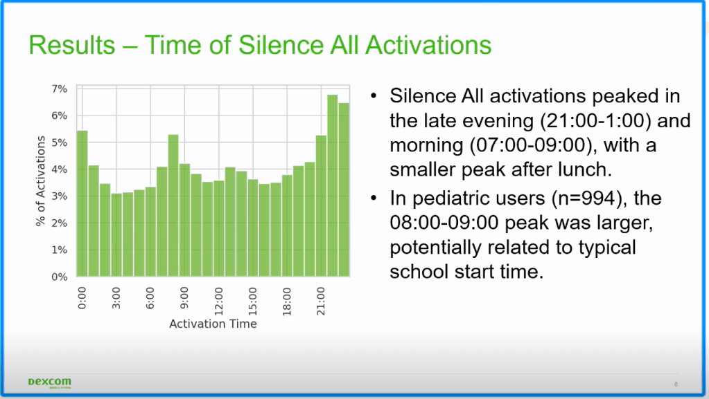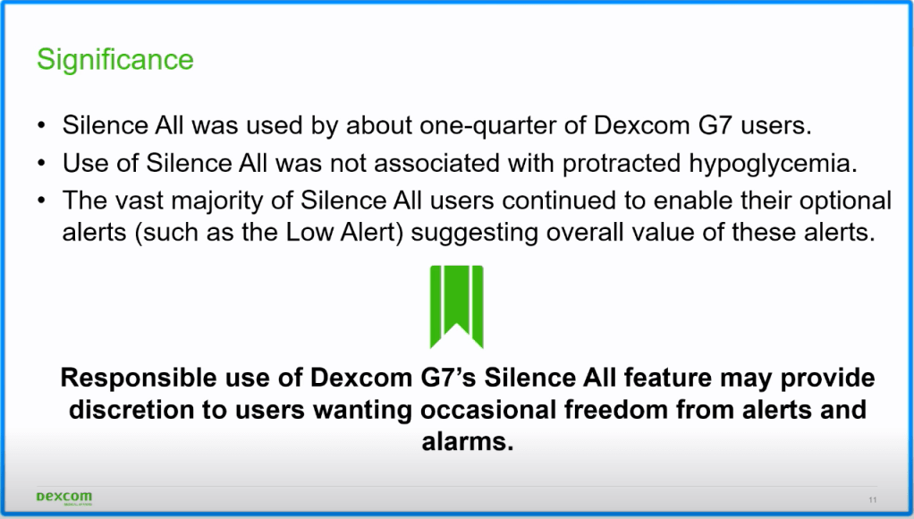 Being able to customise and silence cgm alarms is critical to my quality of life and ability to work, so I was also drawn to Dexcom’s presentation on how people are using the new “Silence All” feature of the G7.