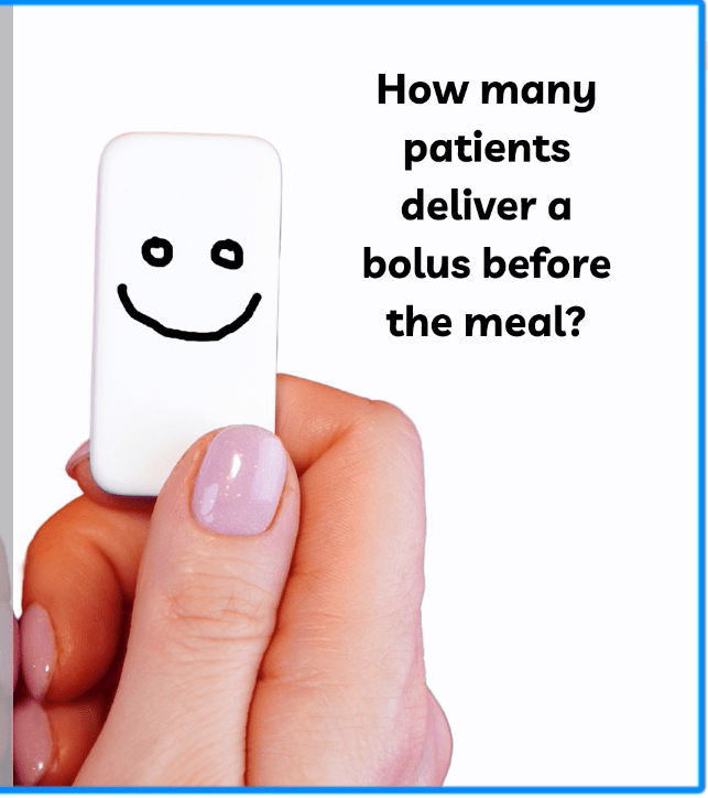 The presentation was prefaced by a slide indicating that 25-45% of people with T1D report “bolus mistiming” which Maya suggested was due to factors including fear of hypoglycaemia (the major reason), because it interferes with daily activities and forgetting to bolus. She stated that 1 in 4 meal boluses per day are “delayed” and that late bolusing while using automated insulin delivery systems can result in lows. So it wasn’t just me?