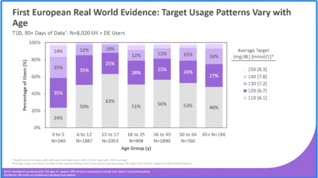 Omnipod OP5 data shows people in different age groups choose different BG targets